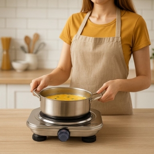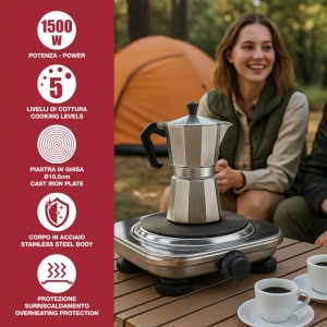 Our electric stove combines functionality and reliability thanks to its sturdy steel housing and 18.5 cm cast iron plate for even heat distribution.