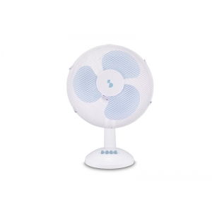 Table fan with 3 blades and steel protection grille with a diameter of 30 cm.