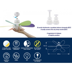 | Special notes | Dual function (ventilation + lighting), 3 selectable light colours (white, natural, warm), adjustable light intensity, night light function, silent operation, suitable for home, office, garage |
