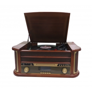 Retro wooden music center with DAB, turntable and cassette player