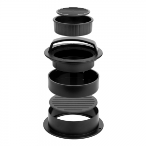 Accessories: 3 perforated discs: 3 mm, 5 mm, and 8 mm, sausage filling and kebbe attachment, and cookie attachment with 4 motifs, hamburger press (2 sizes, as well as for filled patties) and 2-piece storage set for accessories.