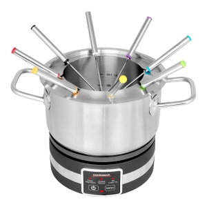 3 temperature settings: 50°C for chocolate fondue and keeping warm, 90°C for cheese fondue and simmering, 210°C for broth and fat fondue, as well as boiling and frying