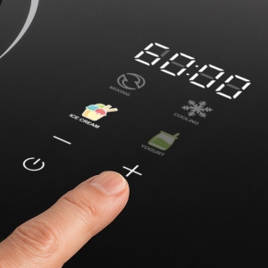 Easy operation with digital LED display, direct selection programs for ice cream / frozen yogurt / sorbet, yogurt, mixing, cooling, time, and practical remaining time indicator