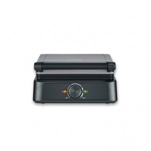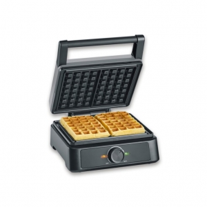 The compact Belgian waffle iron impresses with its elegant matt black design and even heat distribution for perfect browning.